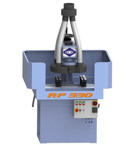 El RP330-Z es una variante de la RP330 diseñada específicamente para la nivelación y la molienda de cilíndricas y cúbicas especímenes de bloques de hormigón, ladrillos, rocas, piedras naturales, etc. Las muestras se fijan en la mesa de trabajo por medio de soportes especiales que permiten aplanamiento de más muestras simultáneamente. El plato abrasivo portasegmentos realiza un movimiento de rotación axial en dirección horaria y antihoraria llamada a "bandera", por medio de un movimiento motorizado de forma automática.